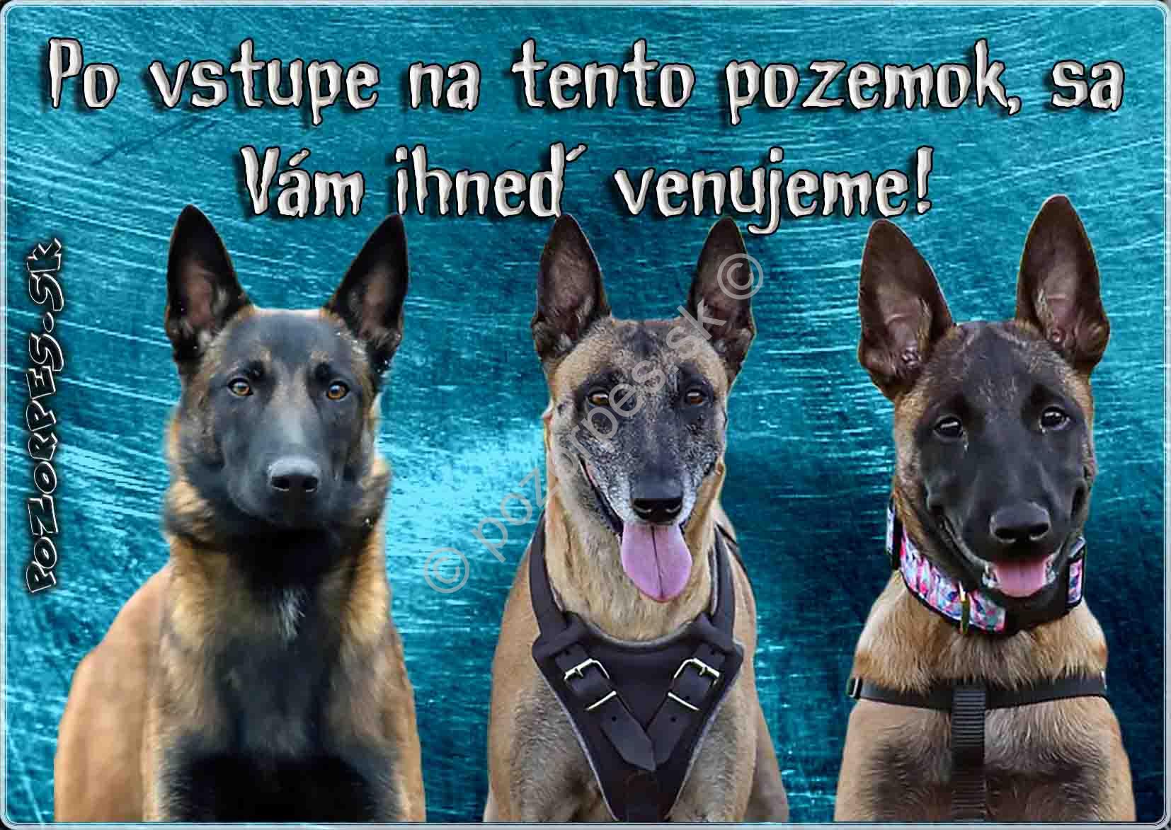 Pozorpes.sk, výstražná tabuľka, Belgický ovčiak - trojica.