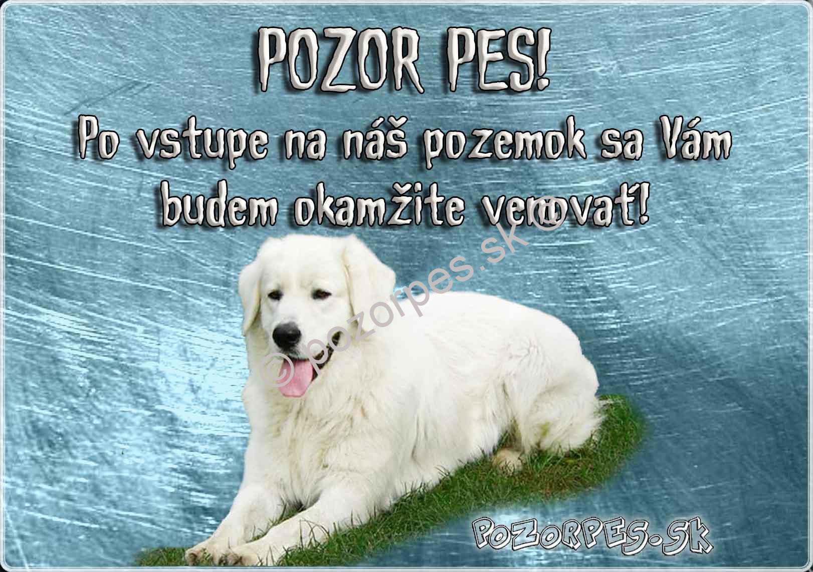 Pozorpes.sk,  výstražná tabuľka Slovenský čuvač celý popis