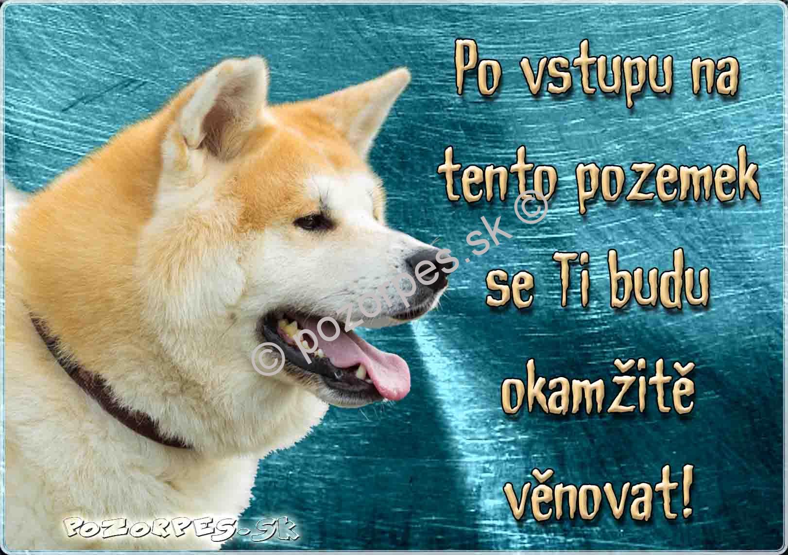 Pozorpes.sk, výstražná tabuľka hliníková Akita inu- český text